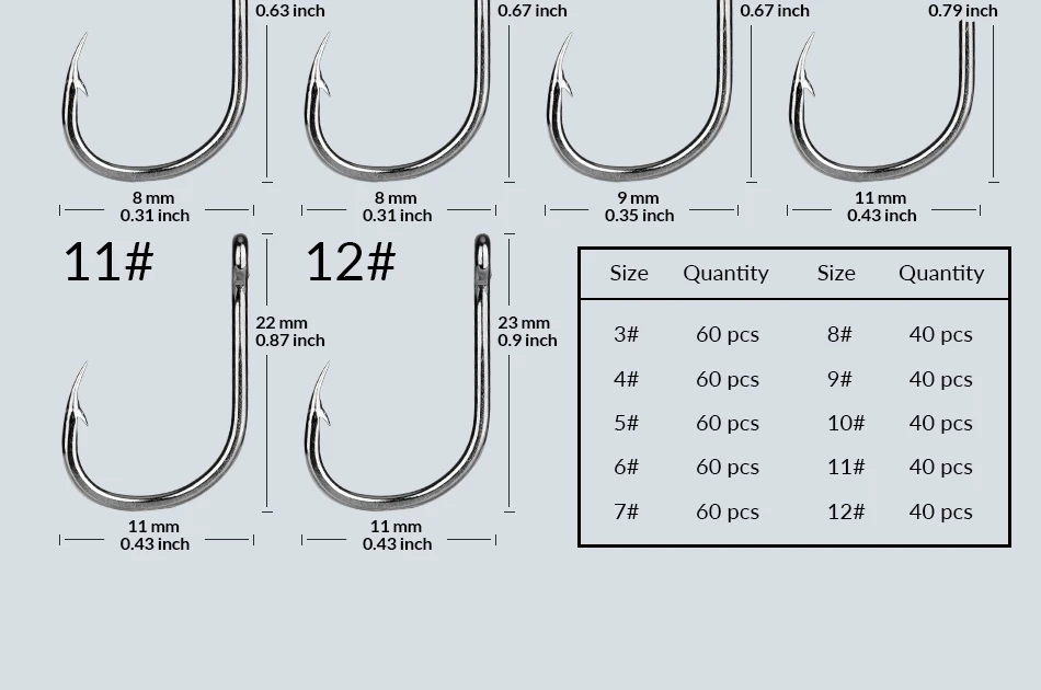 1. Assoramento Perfeito: Design simples e prático, confiável para confiabilidade, durabilidade e resistência.esses anzóis de pesca são muito bonitos.Há uma variedade de anzóis de tamanho pequeno, seria bom para pesca no gelo e perfeito para peixes pequenos, panfish como bluegill, robalo, cabeça de cobra e outros peixes.