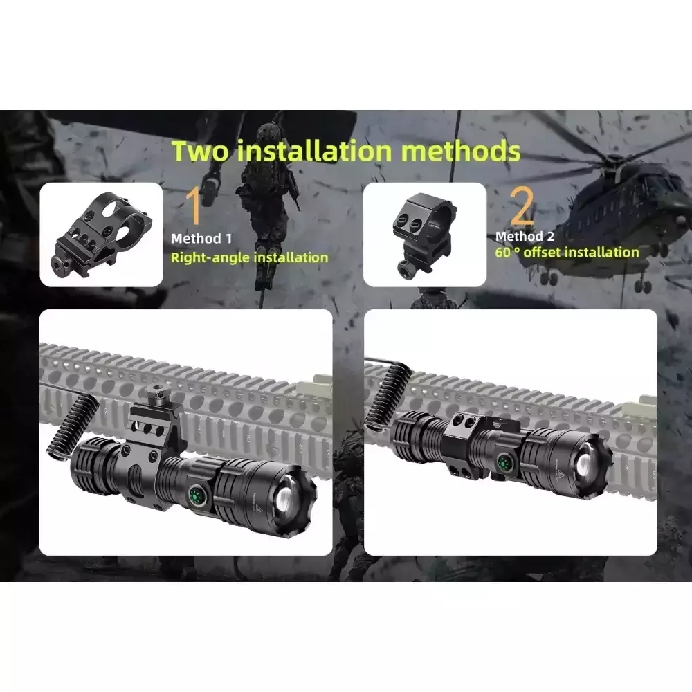 Interruptor remoto: 2 interruptores - um para interruptor de botão, pressione para acender a luz e segundo toque para desligar a lanterna; um para interruptor de pressão, pressione o tempo todo para acender e solte para apagar a luz. Tampa traseira de interruptor duplo que permite fácil limpeza com uma só mão.